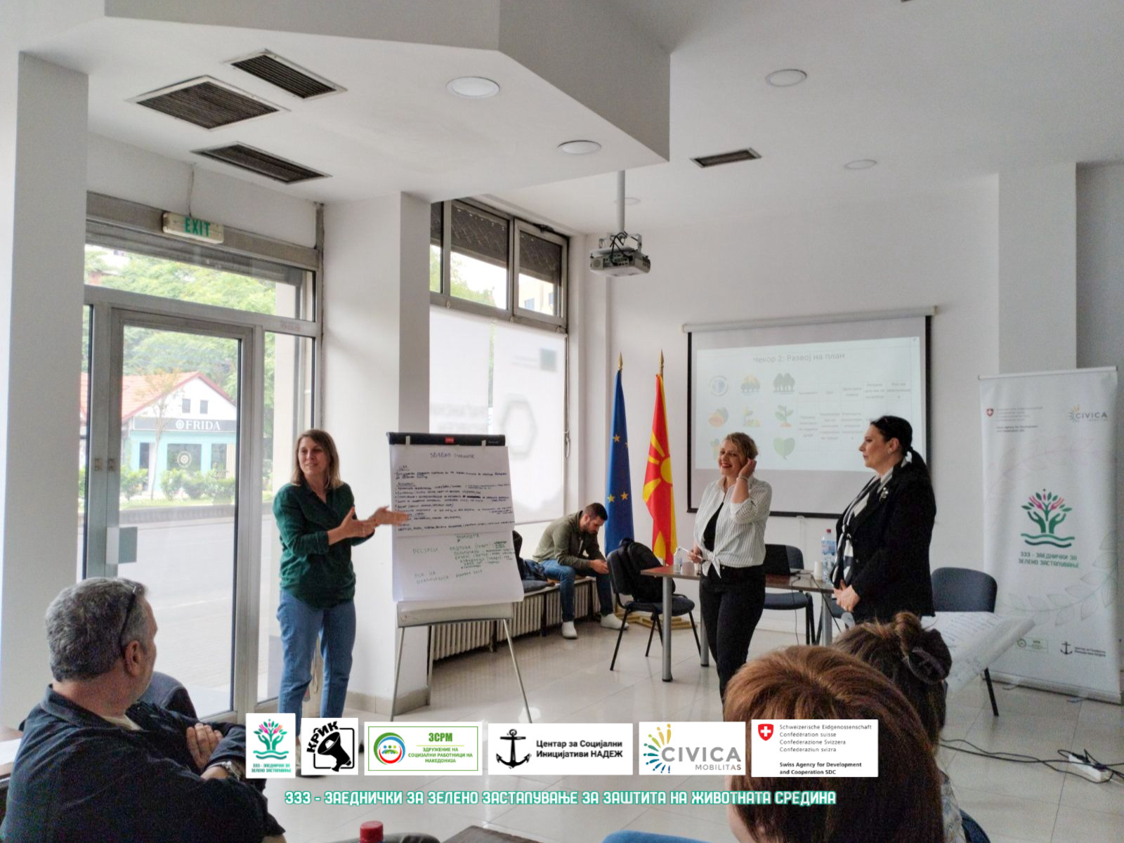 Вториот ден започна со практичната алатка „Дрво на проблемот“, при што учесниците идентификуваа еколошки и социјални предизвици во своите заедници. Следеше поставување цели за застапување и мапирање засегнати страни – клучни чекори за дефинирање успешна иницијатива. Во попладневниот дел се разработуваа стратегии и комуникациски планови за зелено застапување, а групите работеа на конкретни идеи за локални проекти, вградувајќи мерки за обезбедување ресурси и одржливост.